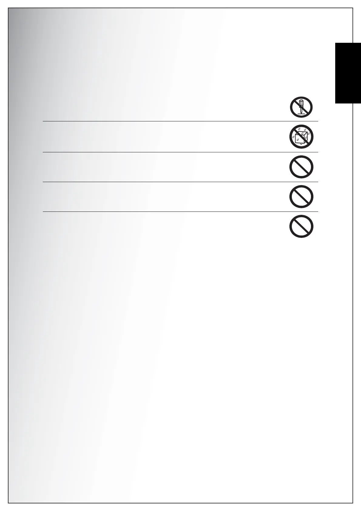 This might cause fire or electric shock. Take special care during rain, snow,