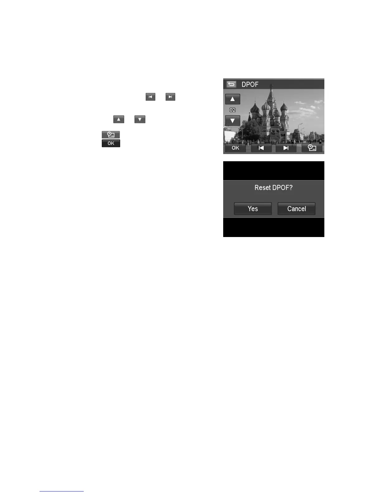 3. Tap Yes to reset DPOF, Cancel to abort.
