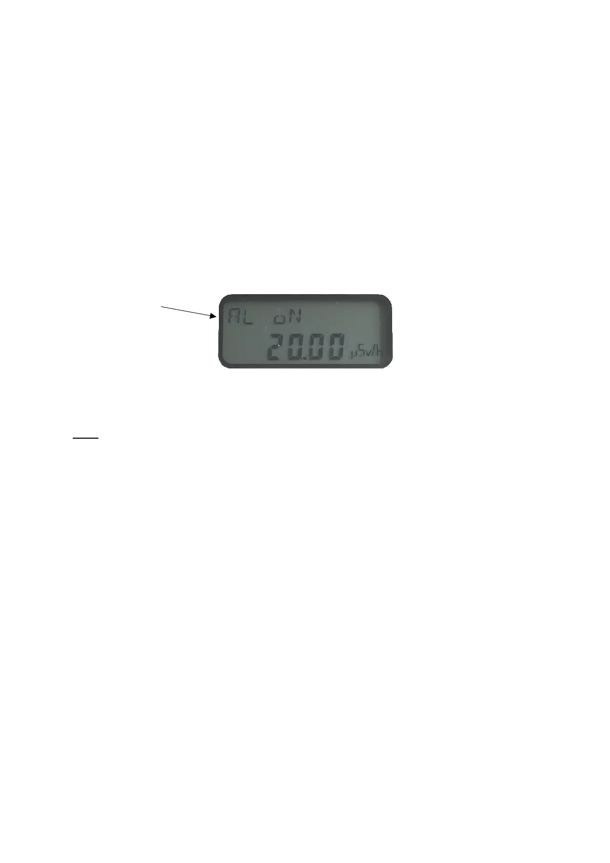 activated) and the value (here 20.00 µSv/h) of the alarm setting are displayed.