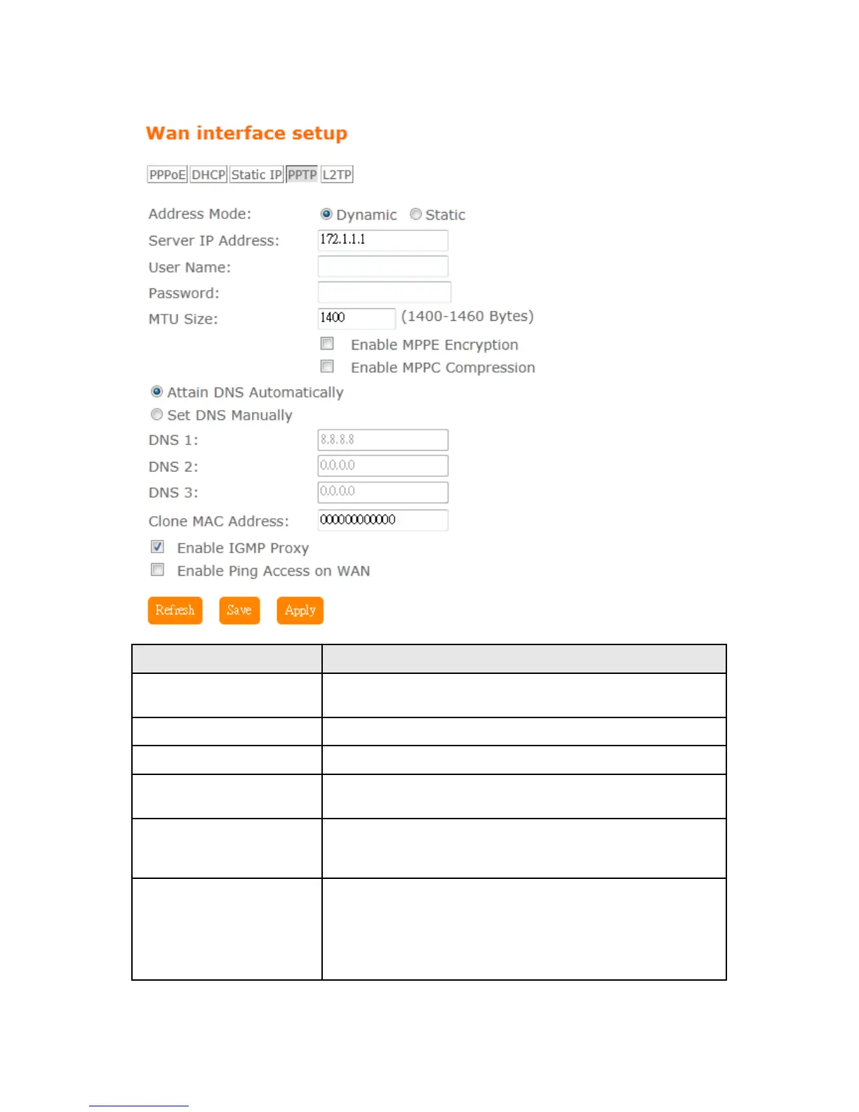 User Name Input PPTP account provided by your ISP.
