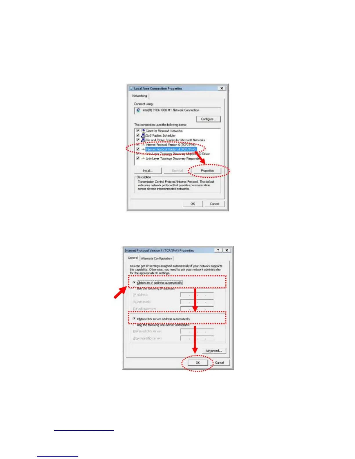 2. Select “Obtain an IP address automatically” and “Obtain DNS server address