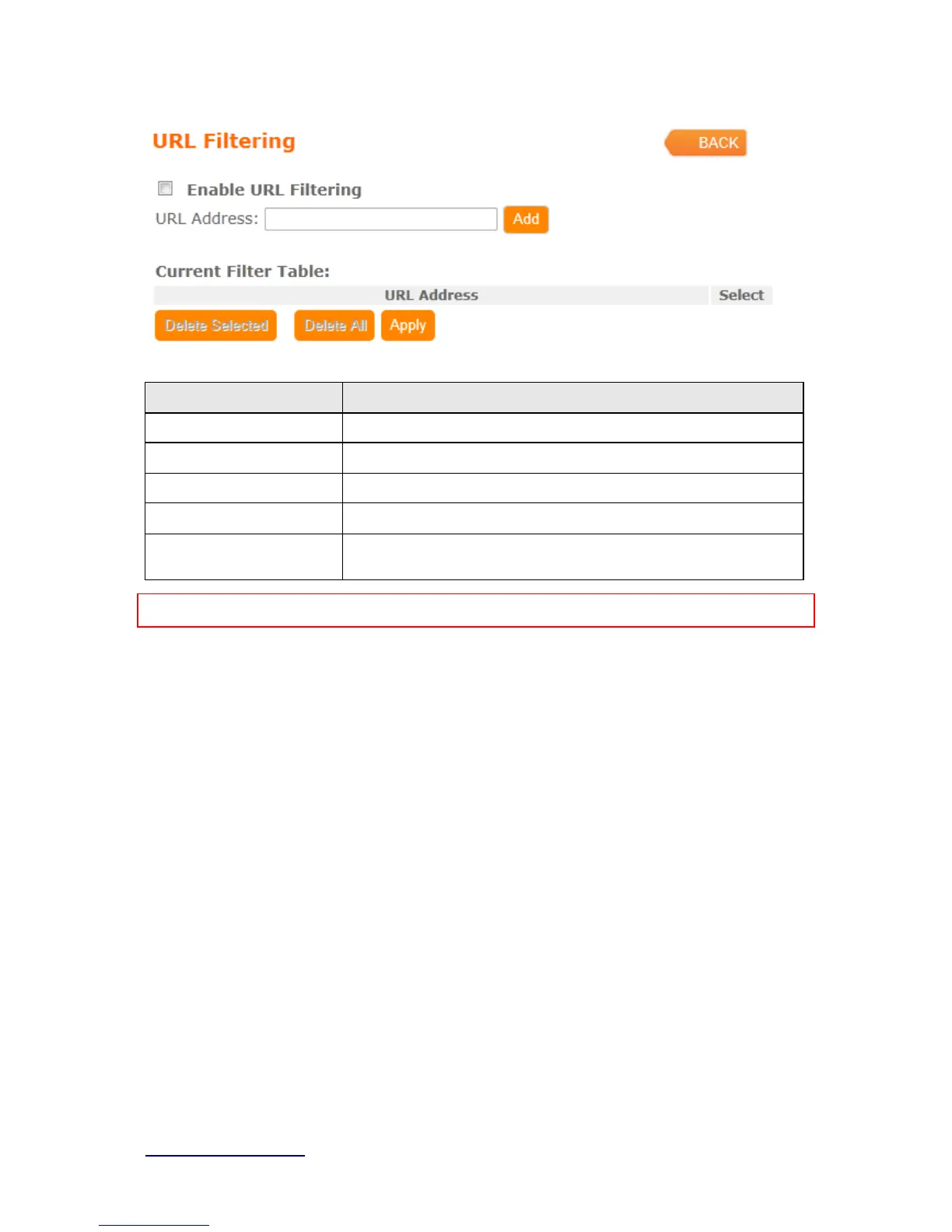 Enable URL Filtering Please select Enable MAC Filtering to filter MAC addresses