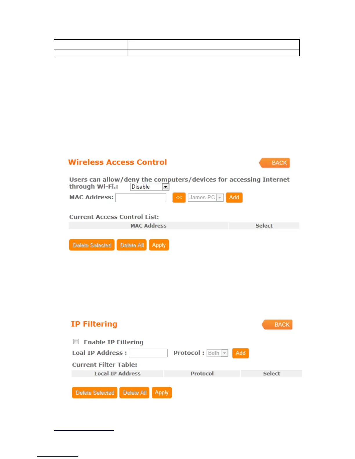 Access Control allows user to block or allow wireless clients to access this router. Users