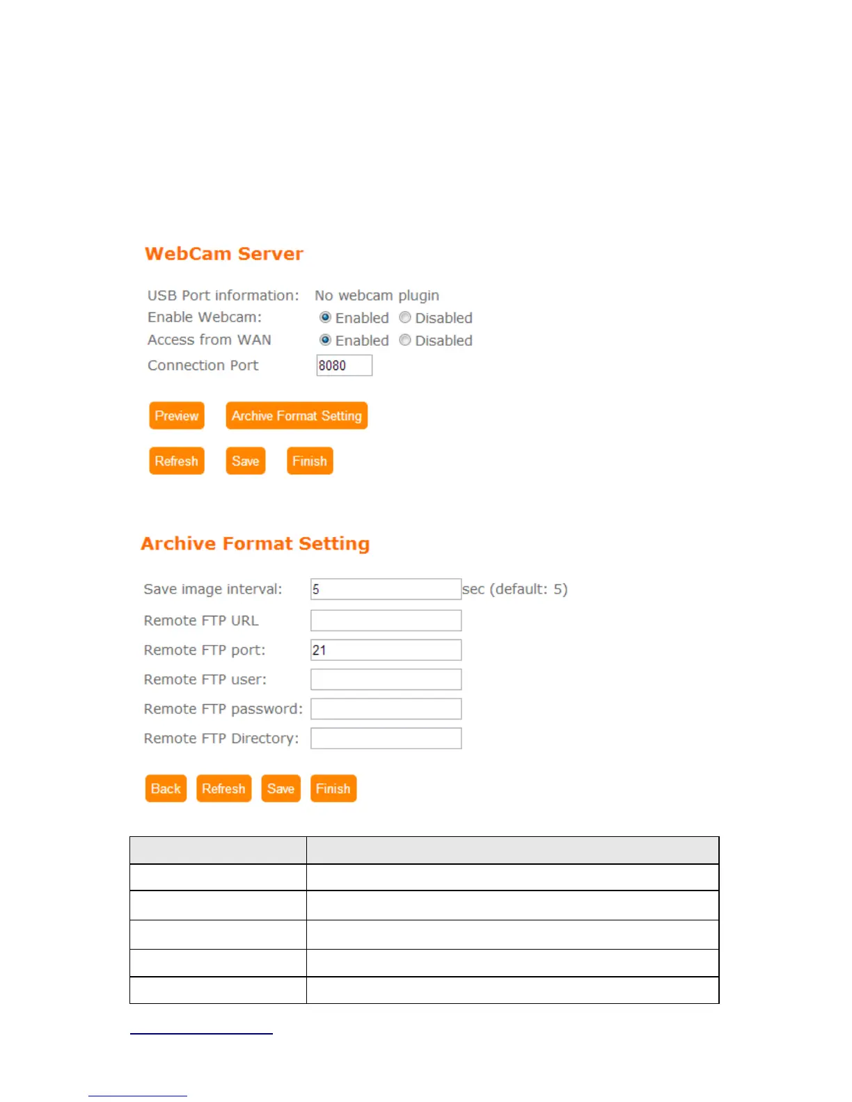 Archive Format Setting Set remote FTP server information for recording webcam image