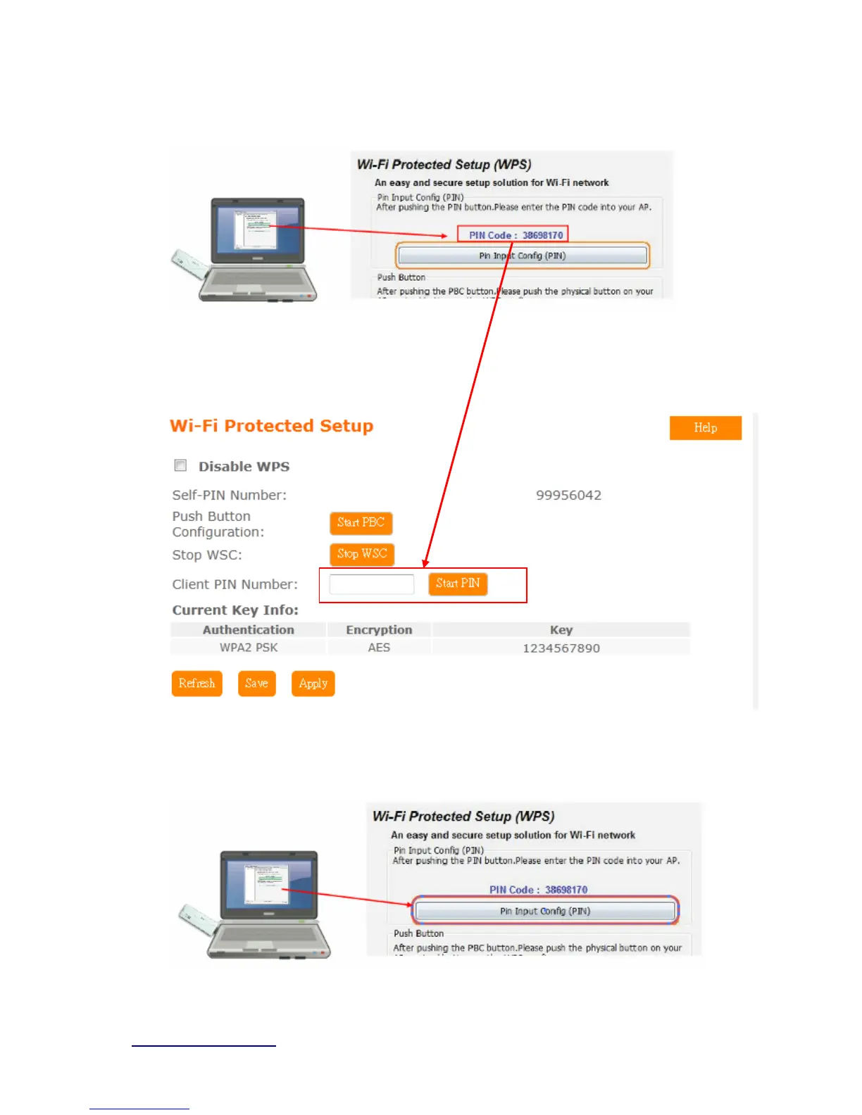 (3). Fill in the PIN number from the wireless card in Client PIN Number field, and then