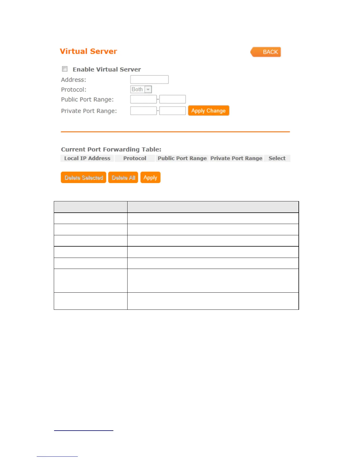 Enable Virtual Server Select to enable virtual server or not.