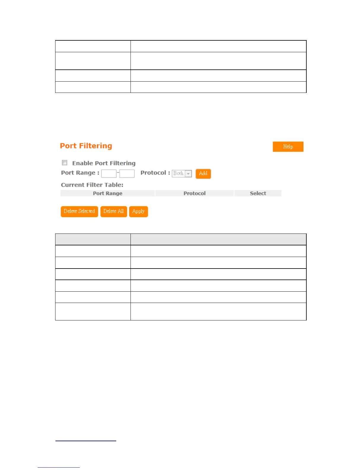 Port Range Enter the port number that needs to be filtered.