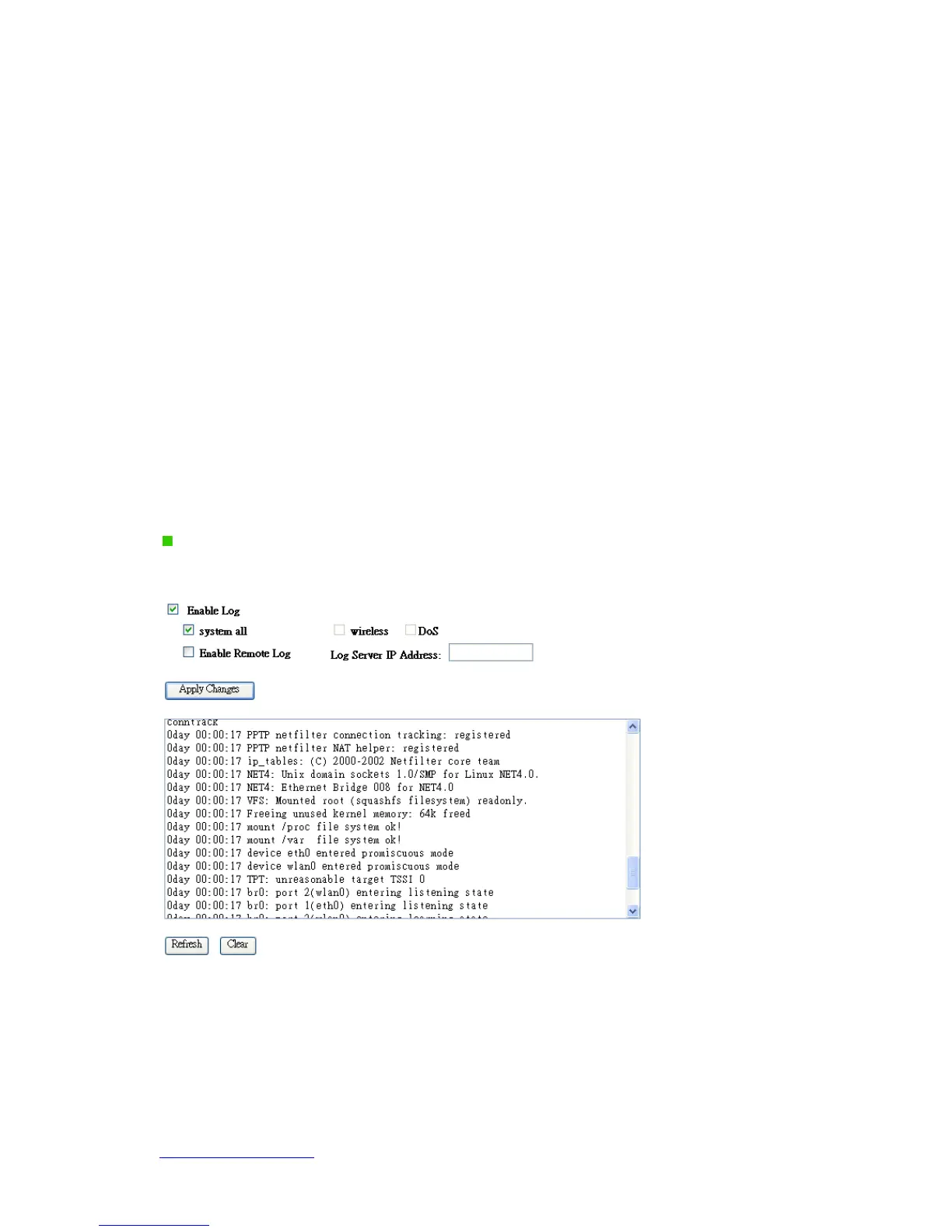 Select Enable Log to record the system log