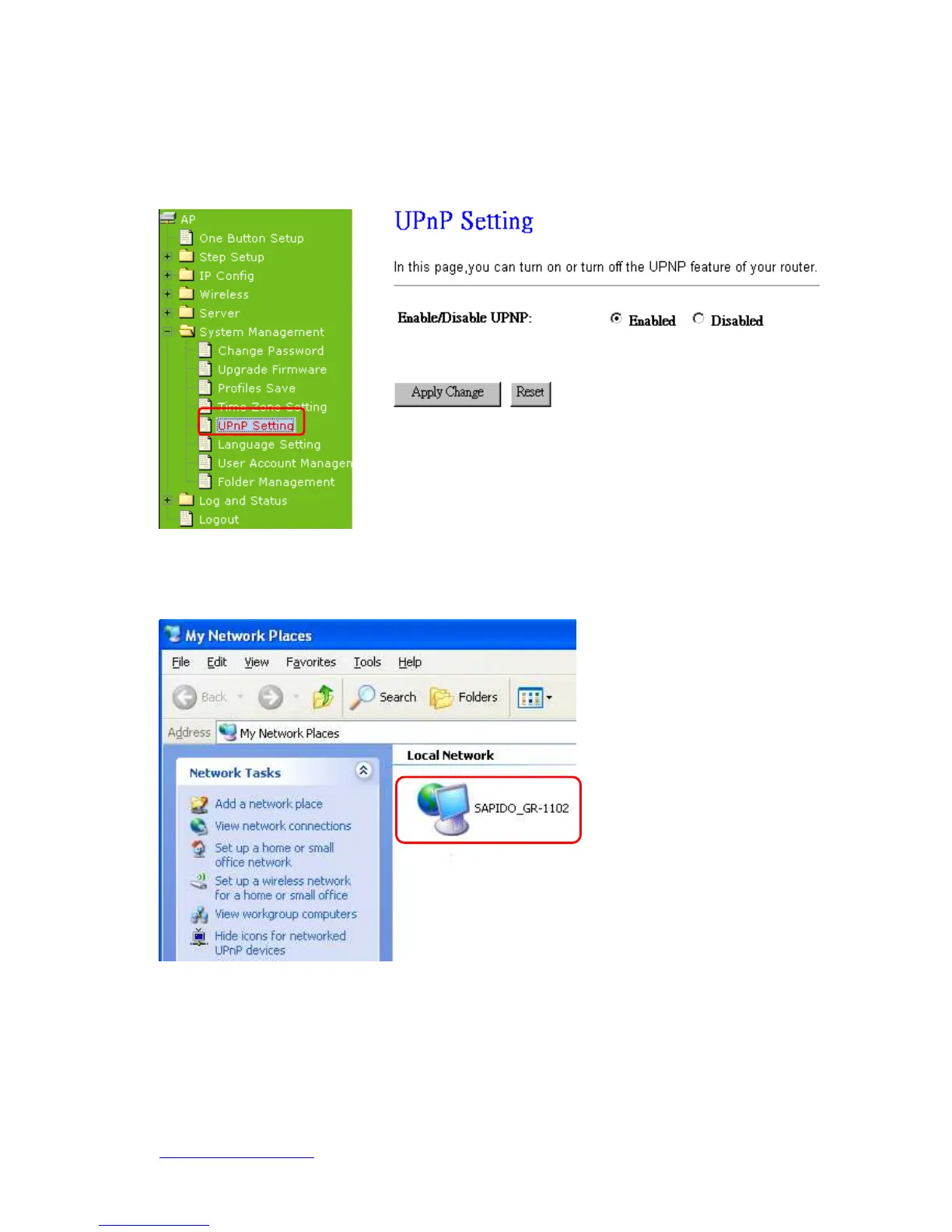 After enabling UPNP, click My Network Places, and user can open the web GUI by just
