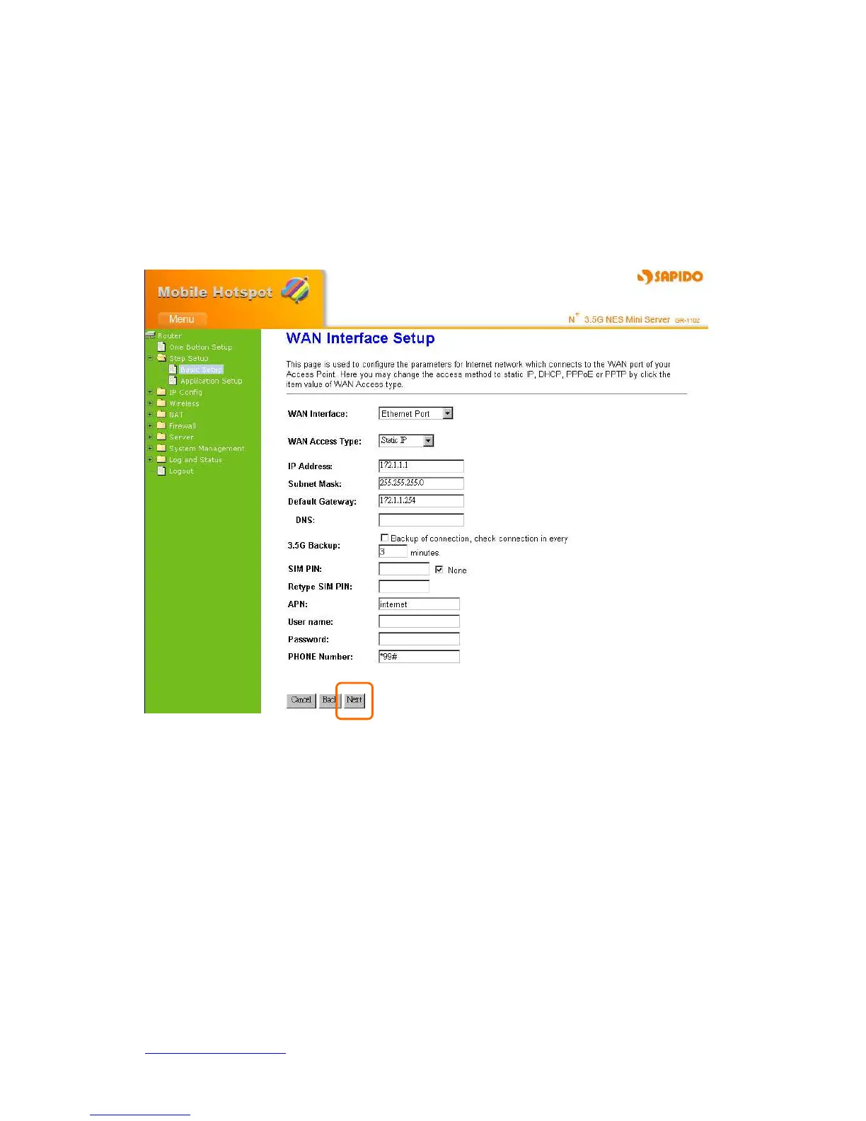 Apply 3G or 3.5G transmission rate for the backup. Once DHCP Client connection is