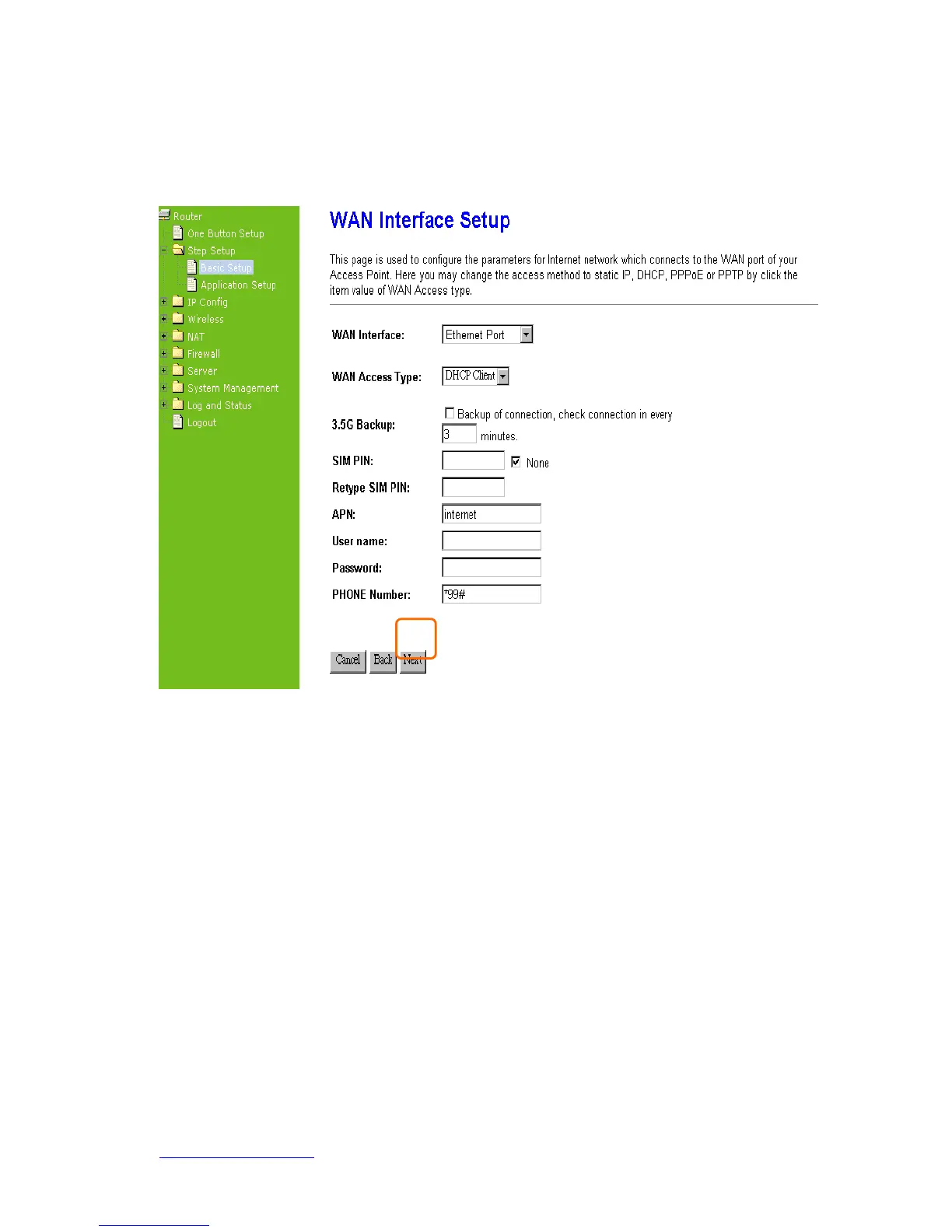 connection is disconnected, the system automatically connects Internet via 3.5G adapter.