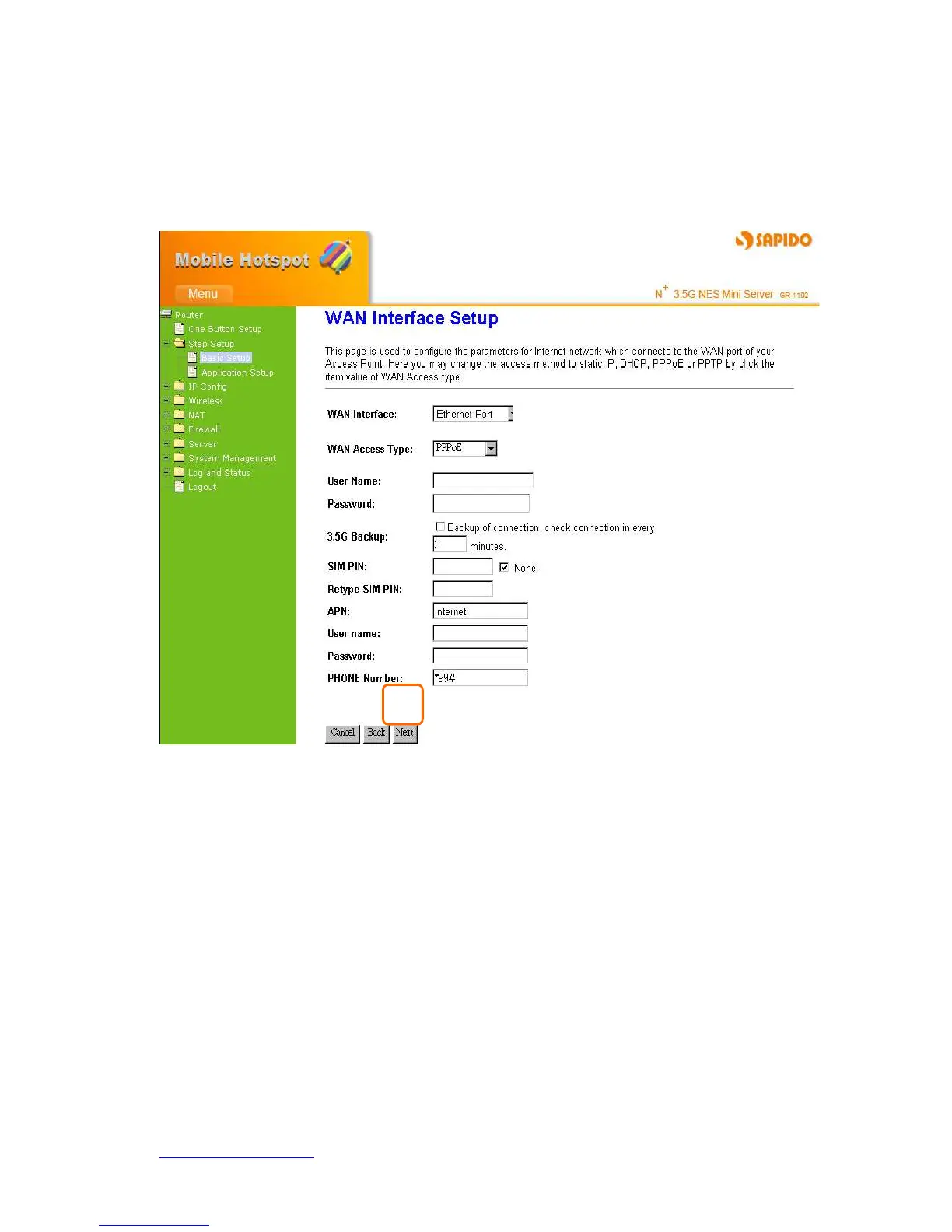 Apply 3G or 3.5G transmission rate for the backup. Once DHCP Client connection is