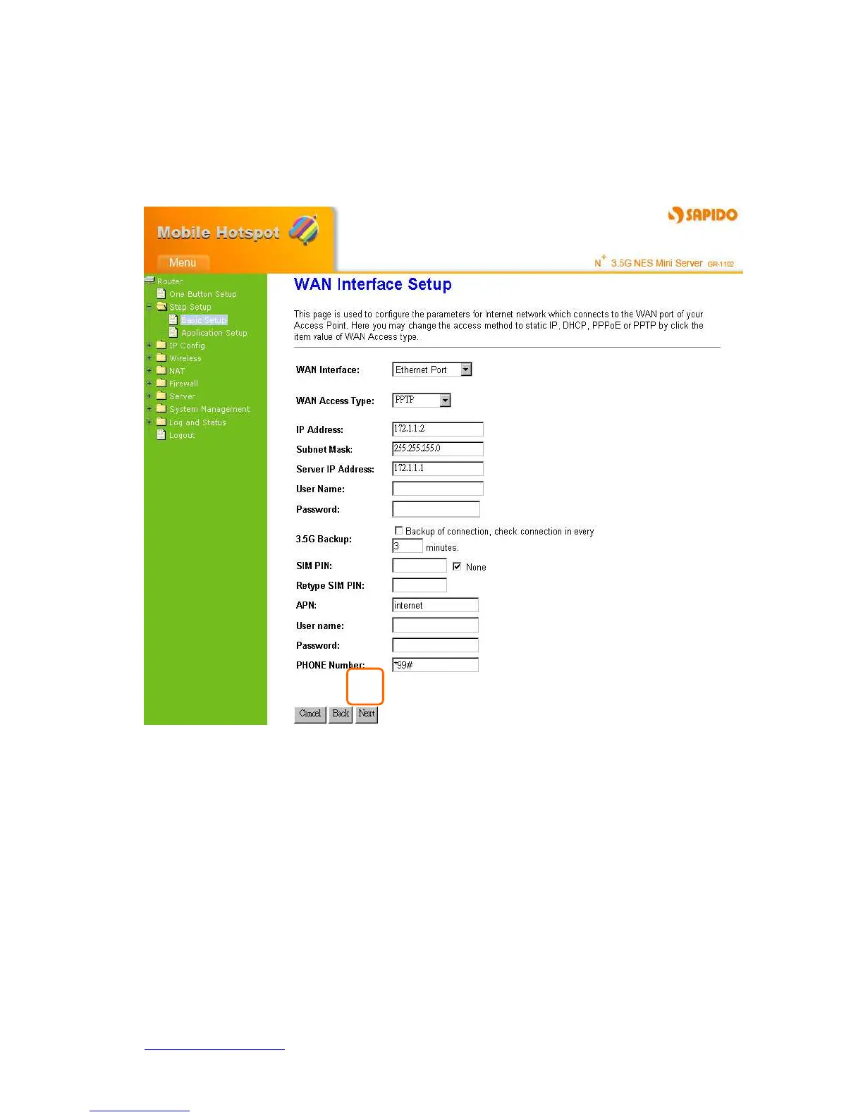 Click on Next button to go on next setting page.