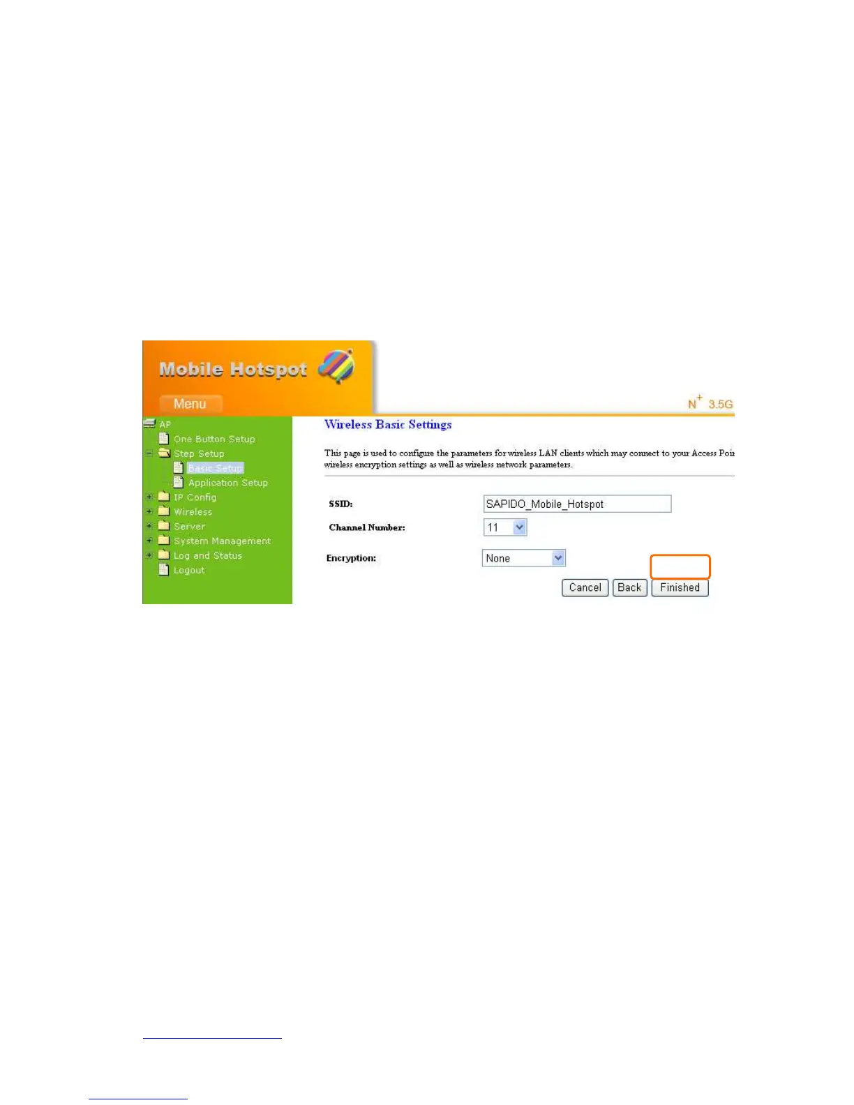 First step is to name your SSID, and the default value is SAPIDO_Mobile_Hotspot.