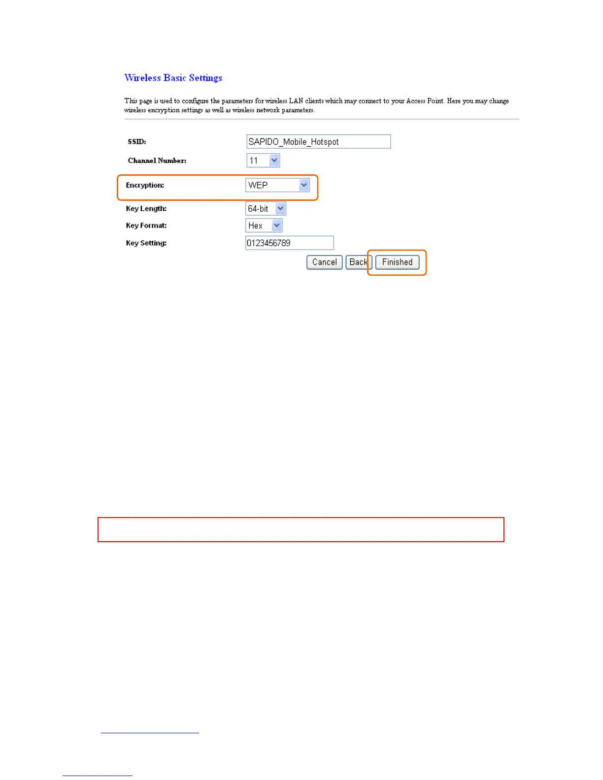 Key Length: For 64bits WEP key, 10 hexadecimal digitals leading by 0x can be
