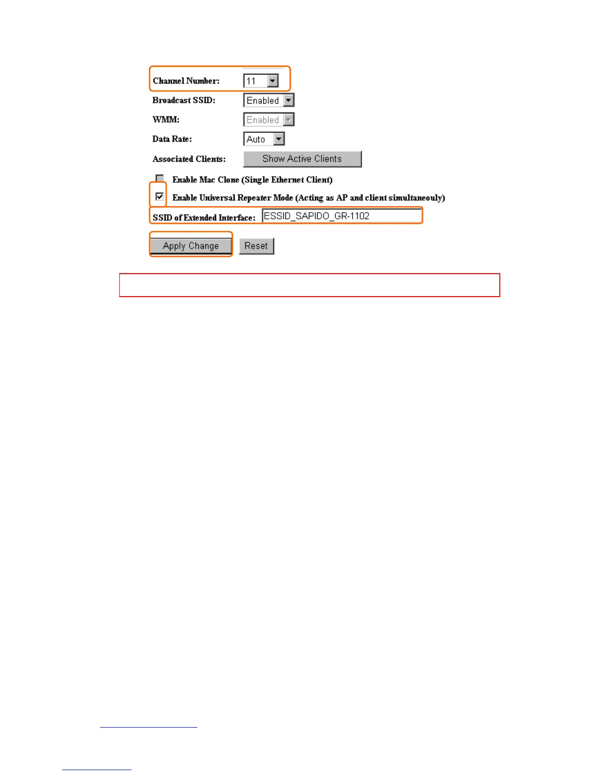 When mode is set to “AP” and Universal Repeater Mode is enabled, user should input