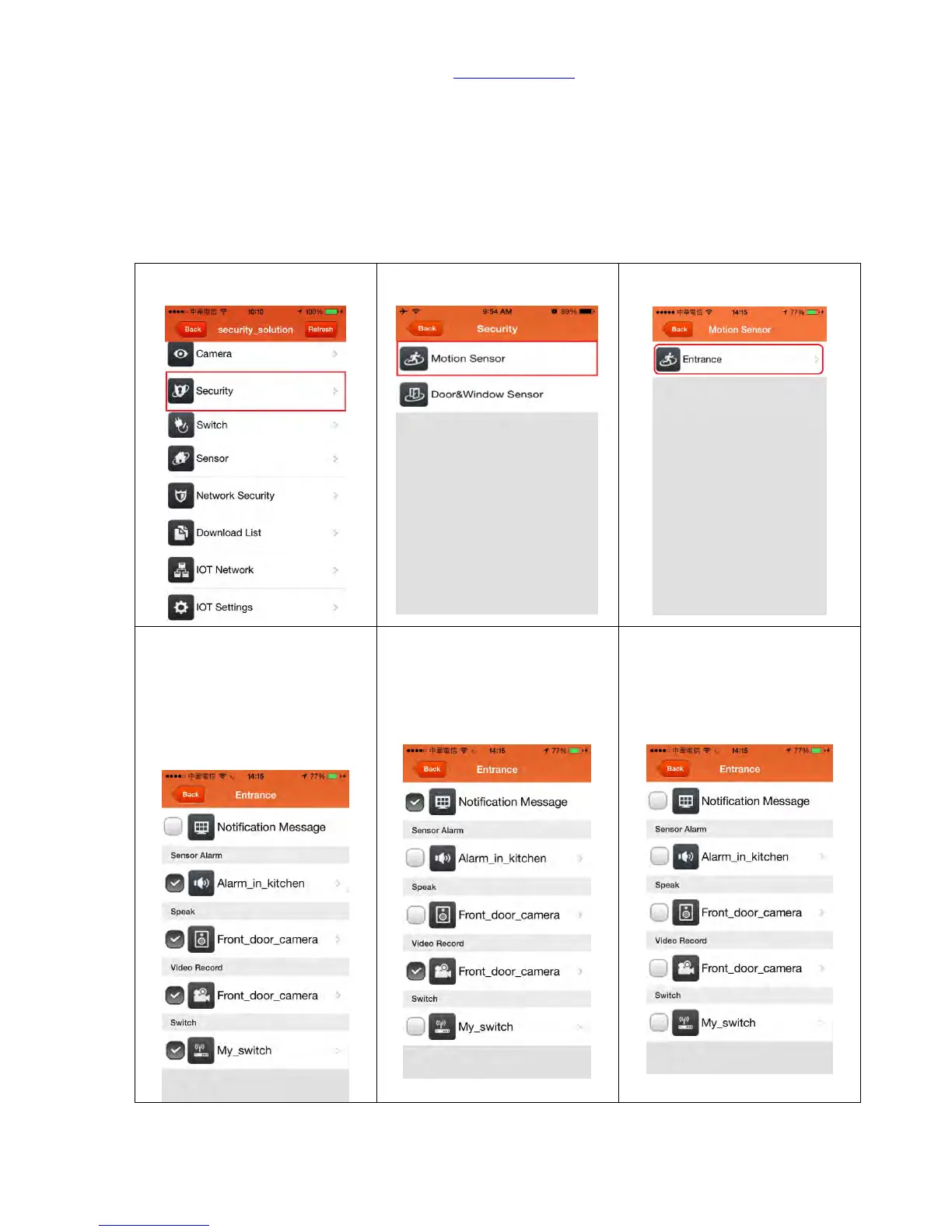 The security system has preinstalled setting with "Sensor Alarm" and “Notification Message”.