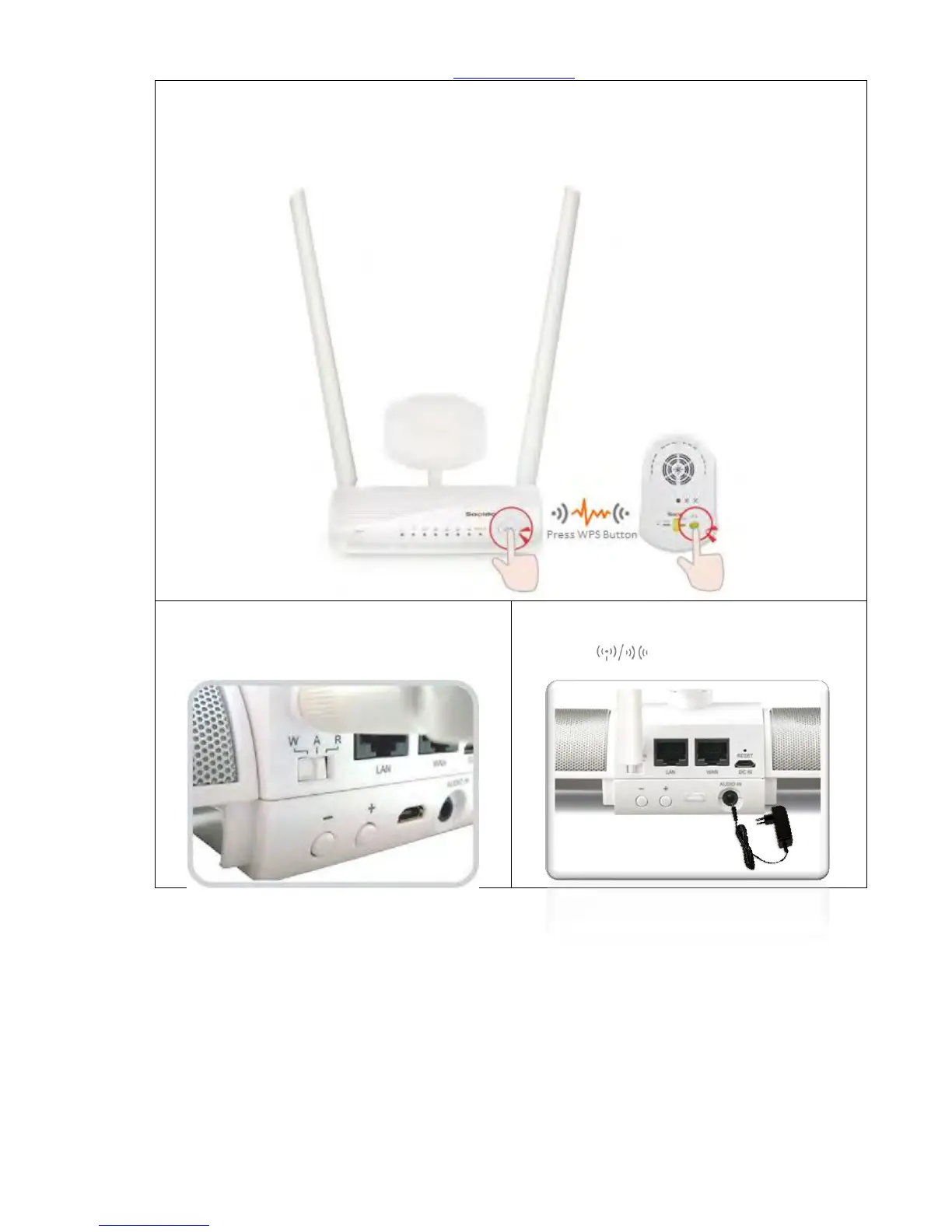 Home Gateway (GR267c): Please press the WPS button on both Security Alarm Router (WDG71n)