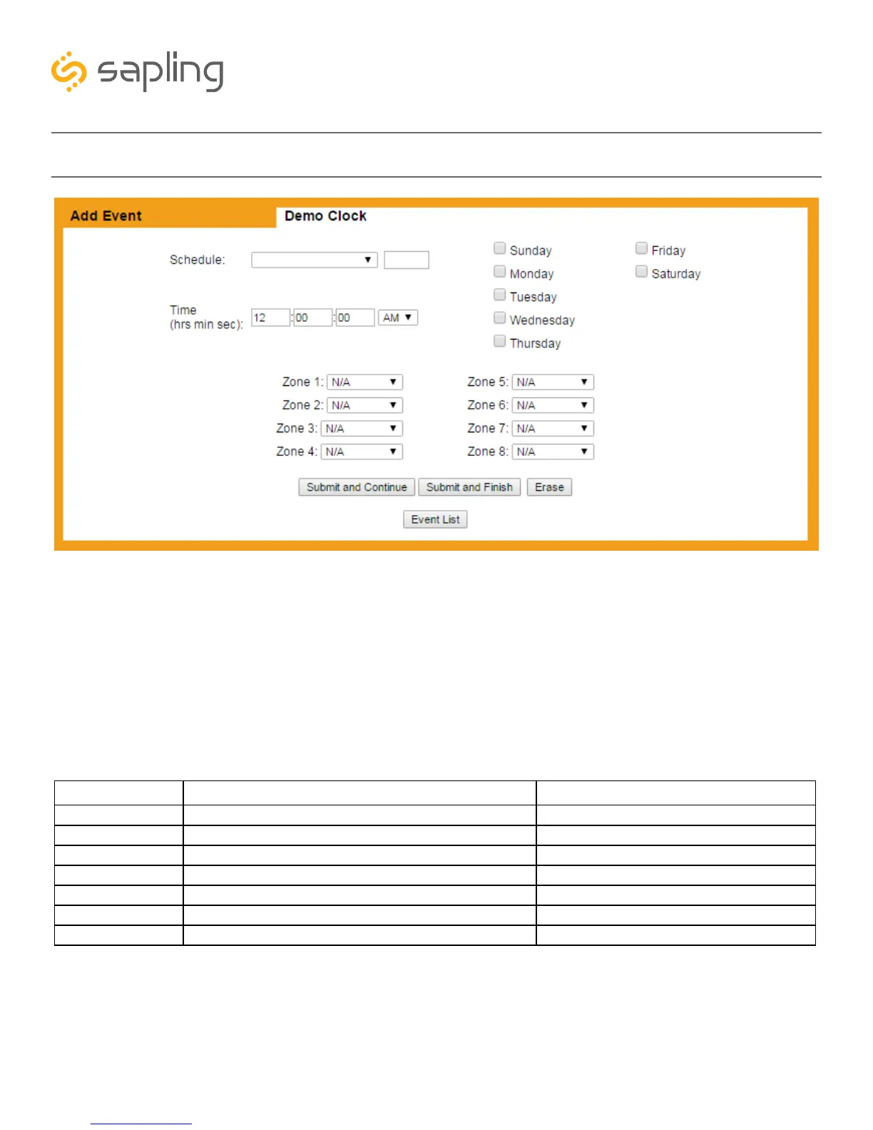 N/A No Action. Relay state does not change. An event may not have all of its zones set as N/A.