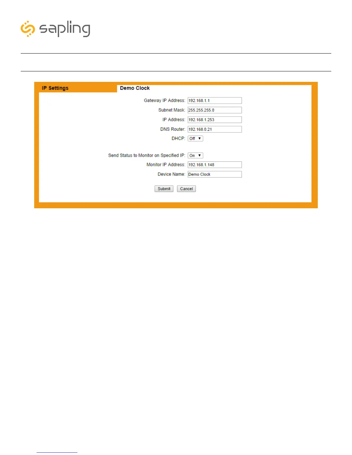 6. Send Status to Monitor on Specified IP - When set to ON, allows the master clock to talk to the