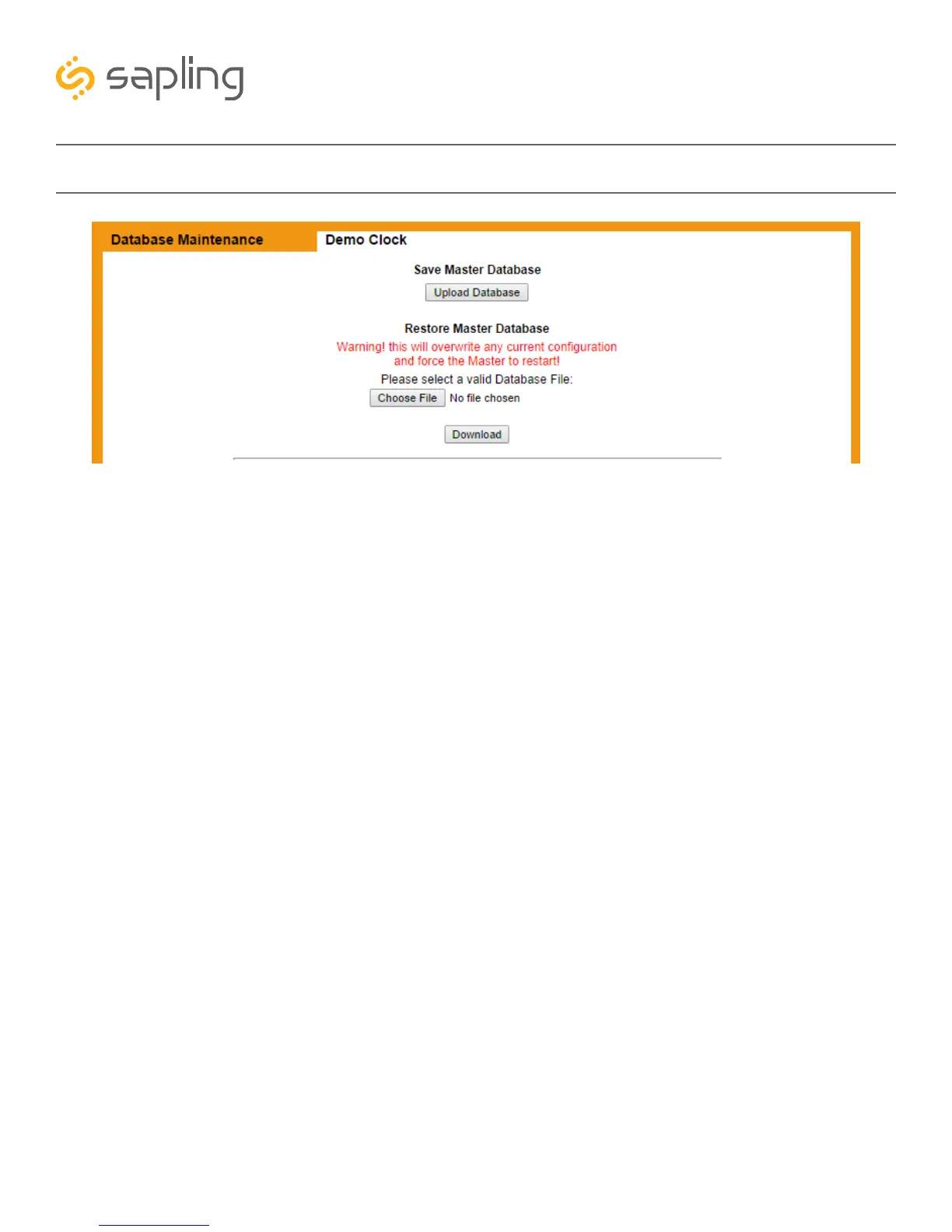 is accessing the master clock through the web interface. The file will be labeled “masterclockA.db”.