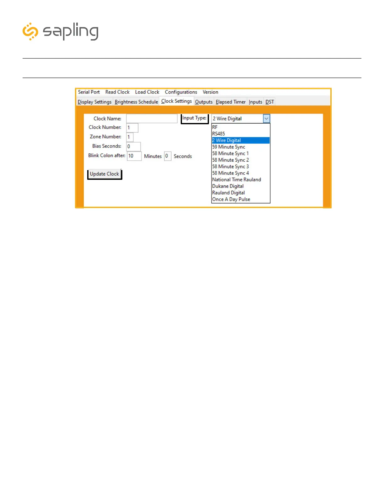 7. Once all of the Clock Settings are chosen, click the “Update Clock” button to store the