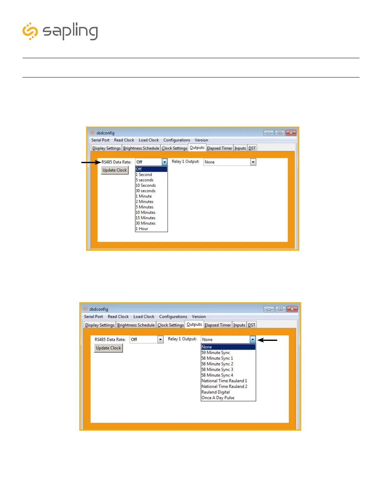RS485 Data Rate: This option determines how often data (time and date) is sent to the clock(s) or other