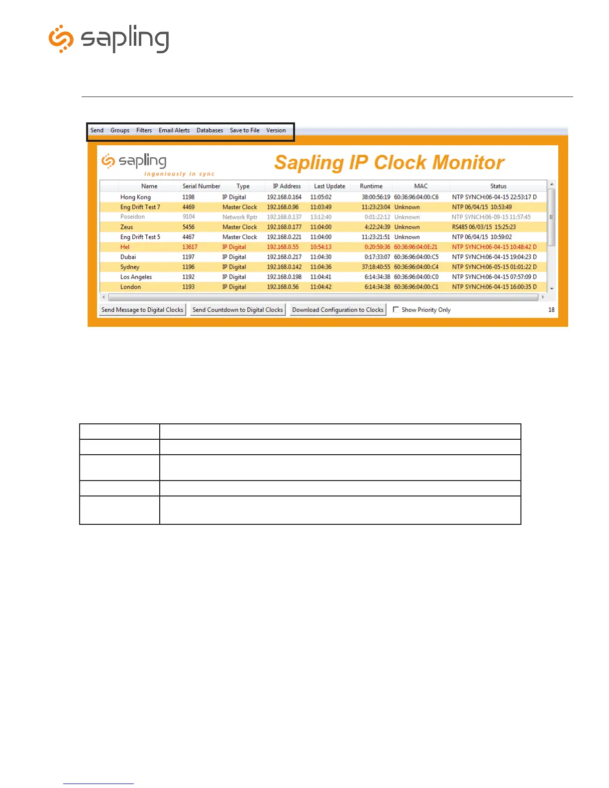Sapling IP Clock Monitor Software - Task Bar Options (continued)