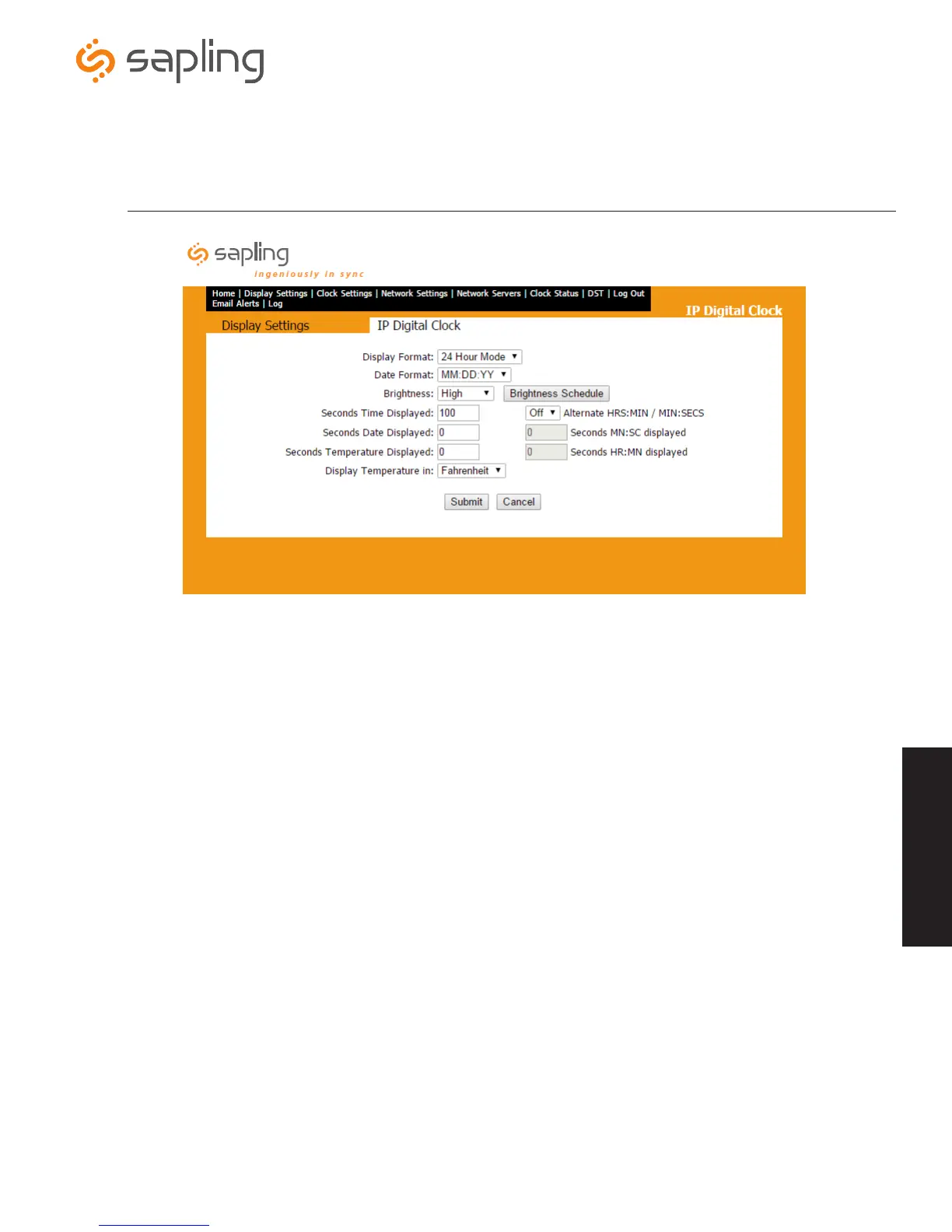 4. Brightness Schedule - This option allows the user to schedule the day and time that the IP clock’s display should be at high, medium or