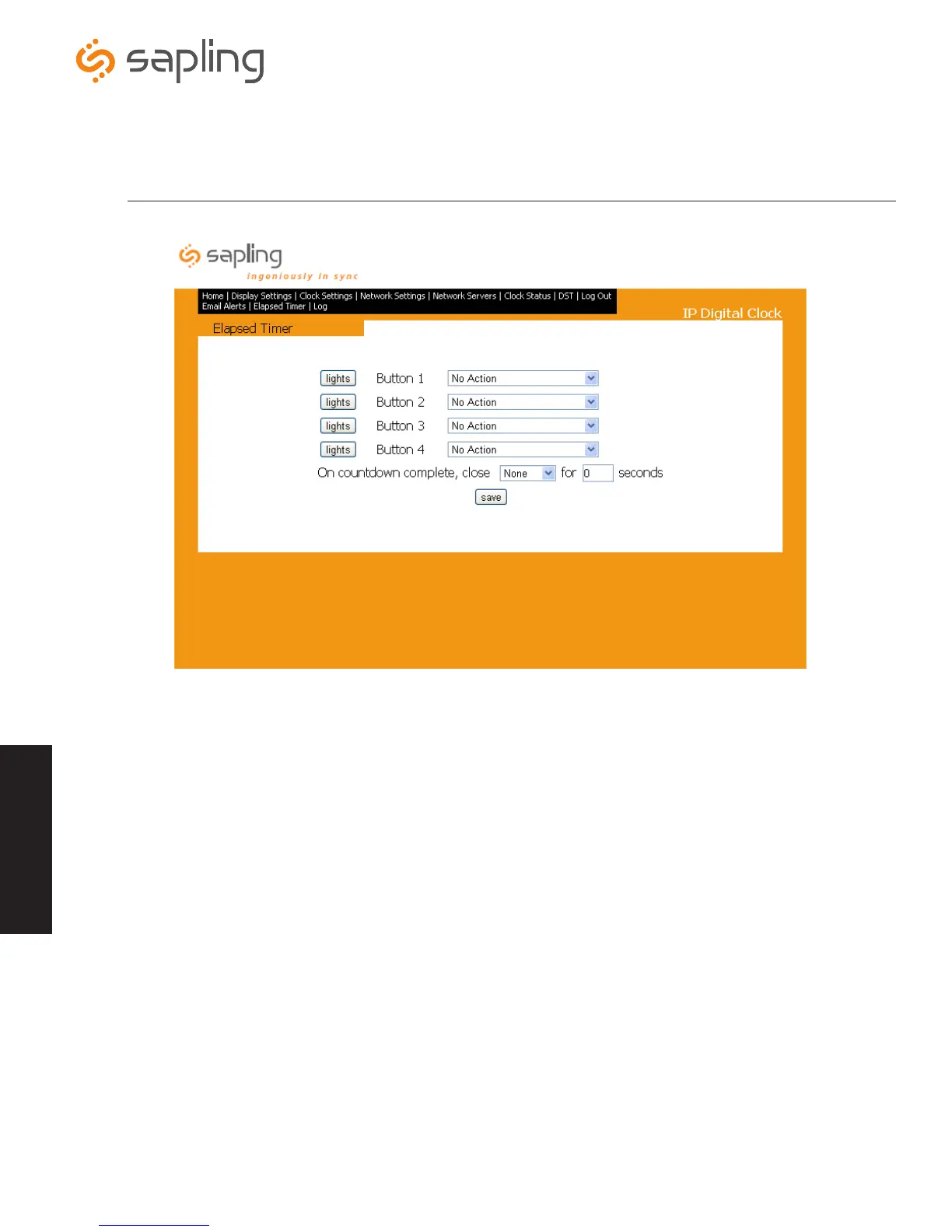 3. Refresh the web interface page. The Elapsed Timer tab will appear in the menu bar. After this step is done once, the IP clock will always