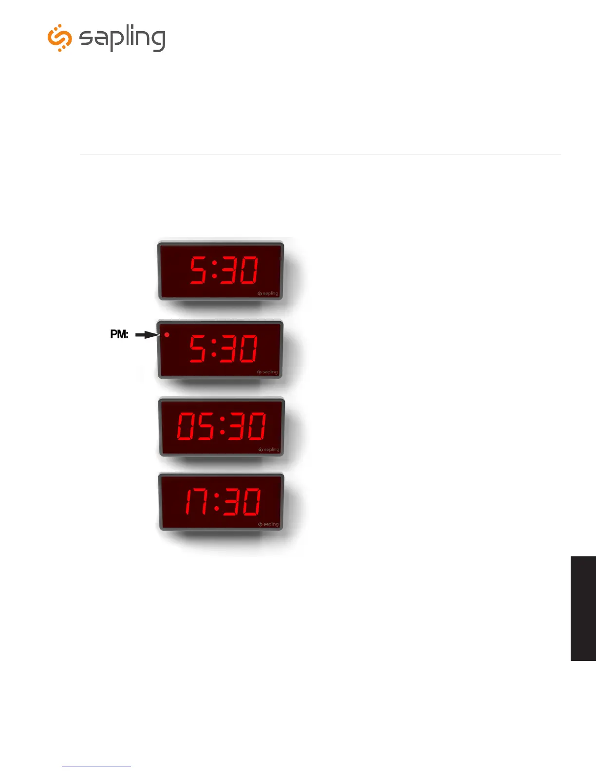 The factory default for all digital clocks is the 12-hour format. If you wish to set the clock to display time in a 24-hour format, see the section