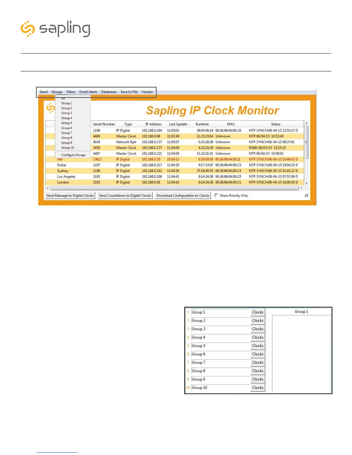 group. Example: Clicking on “Group 1” will cause the monitor to show only the devices that have been added to