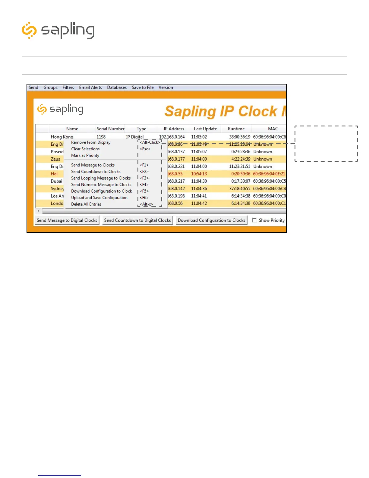 10. Delete All Entries - By selecting this option, the user can remove all clocks from the Device List.