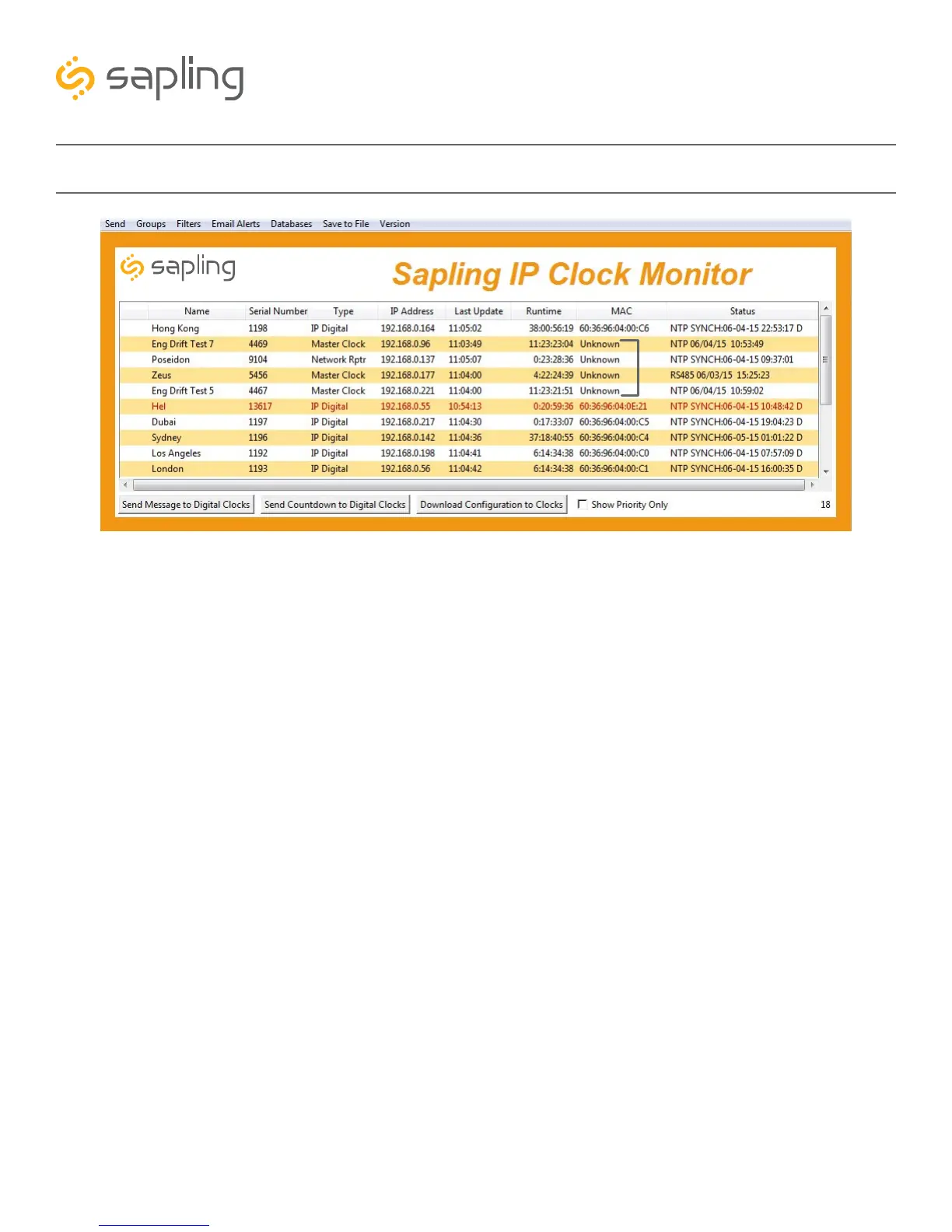 1. Characters are Red - When the characters of a clock have turned red, then the clock has not sent its
