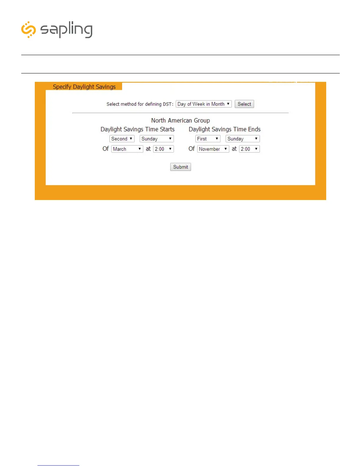 been set, click Submit to apply the settings to the clock. Example: Second Sunday of March at 2:00.