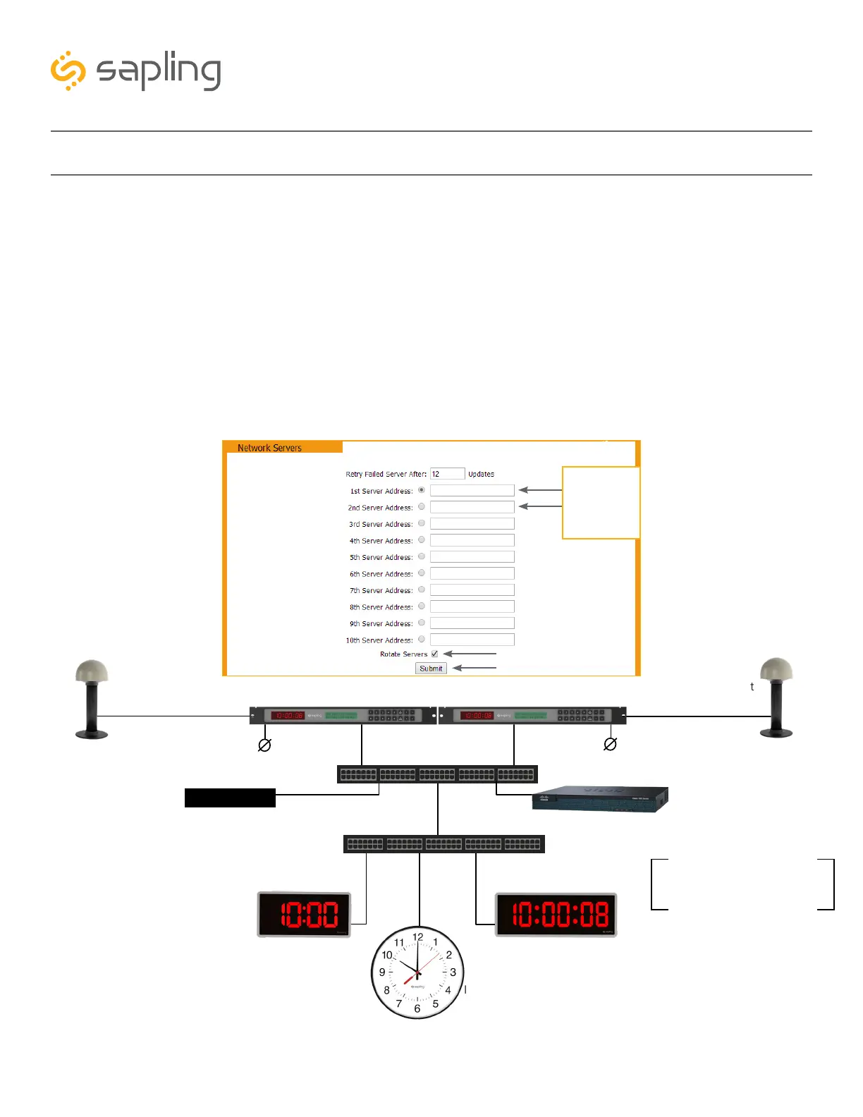 • Set the in-house NTP Time Servers or master clocks (capable of providing time data to the IP clocks) with
