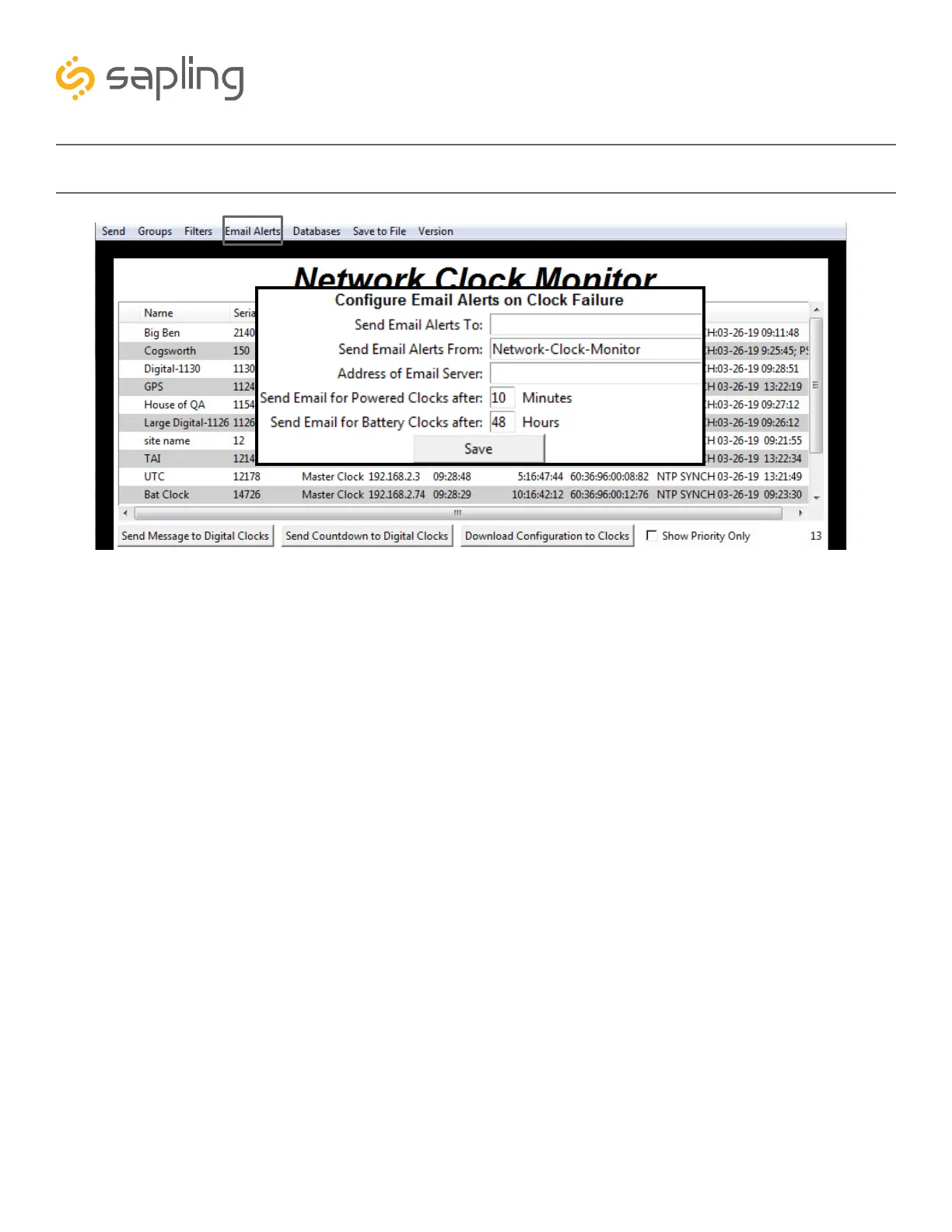the Network Monitor Software hasn’t heard from a listed clock or other network device after a certain
