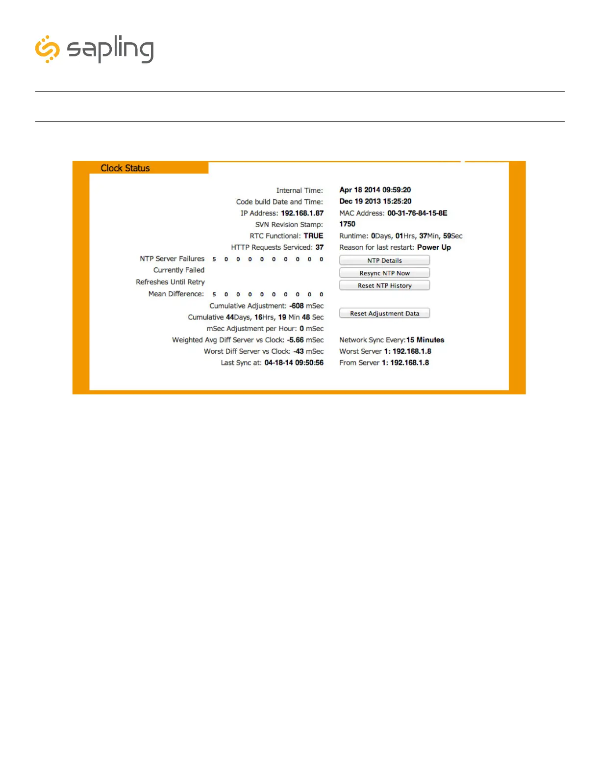 2. Resync NTP Now - This button forces a synchronization with the NTP server when clicked.