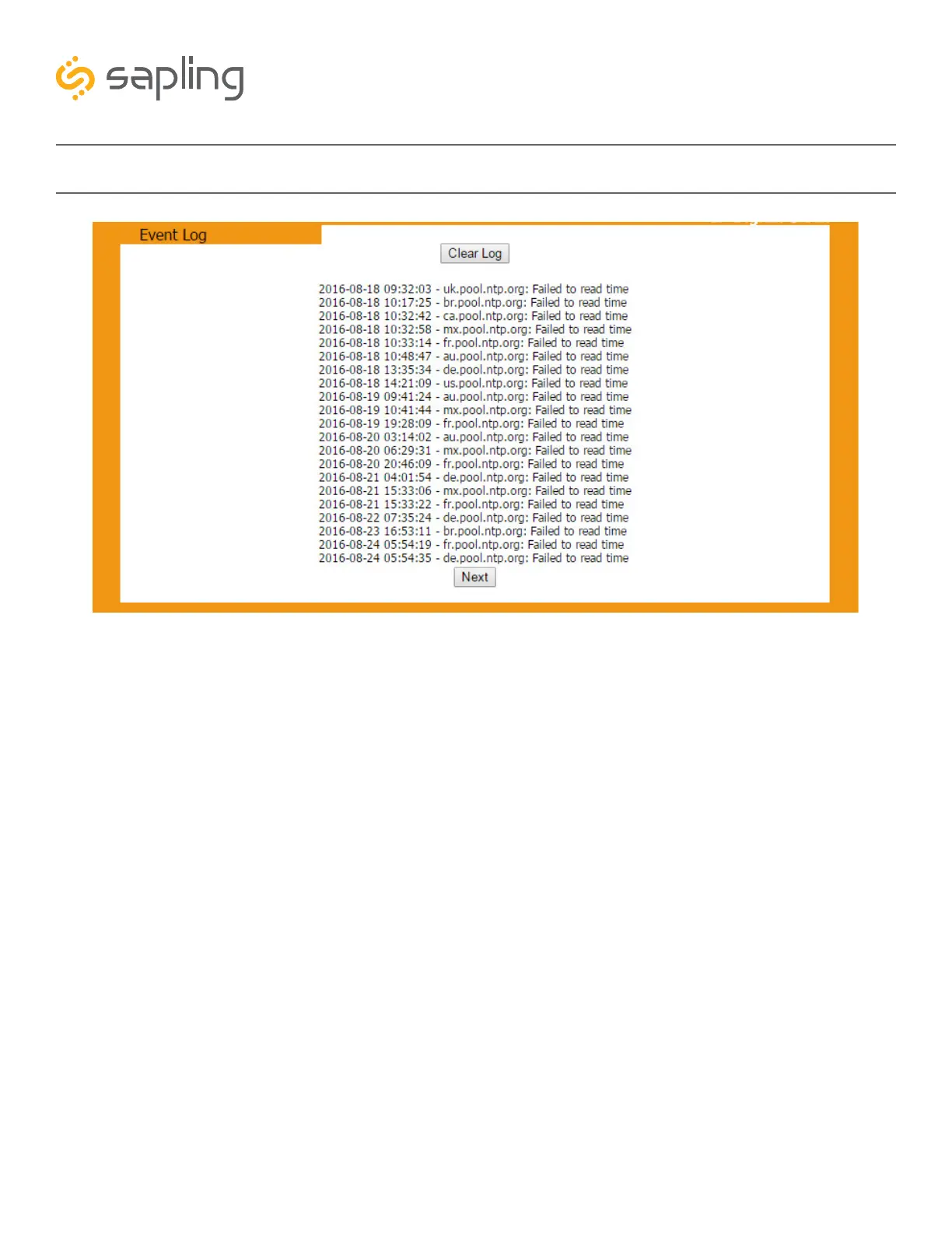 2. Next - When clicked, this button displays the next page of log entries.