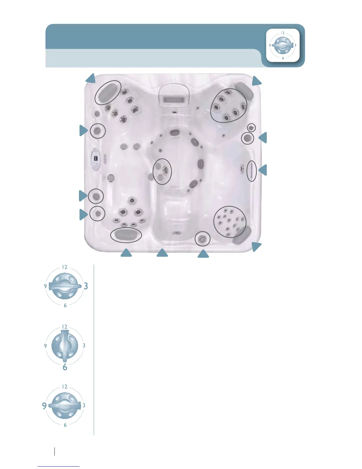 • The 9 o’clock position operates the 12 jet seat flow 3B.