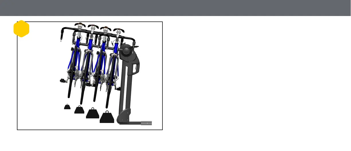 strap that hangs below the rack arm. Load bikes on the arms