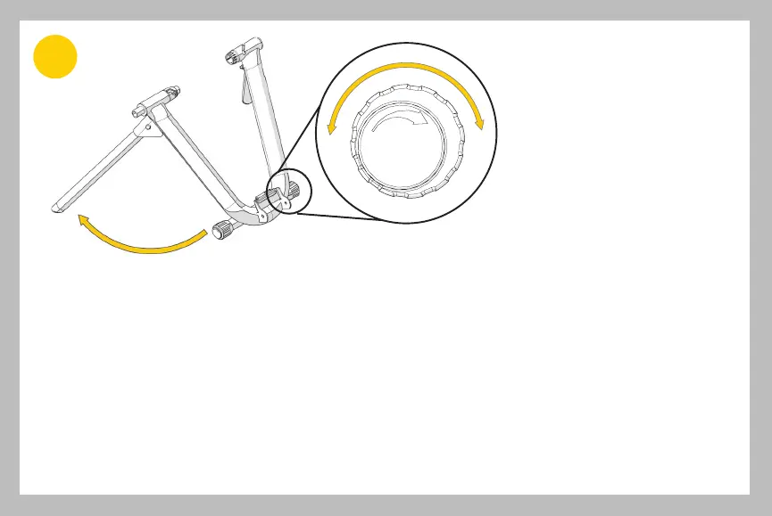Całkowicie wysunąć nóżki trenażera i ustawić urządzenie na płaskiej powierzchni. Ruchome elementy stopek