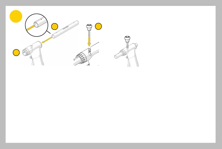 otwór znajdujący się pośrodku tulei zamka (j). Dokręcić dźwignię (i) w tulei zamka (j).