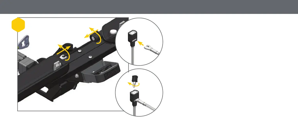 Turn lock head 90 degrees and pull cable out of tray. Turn lock fork
