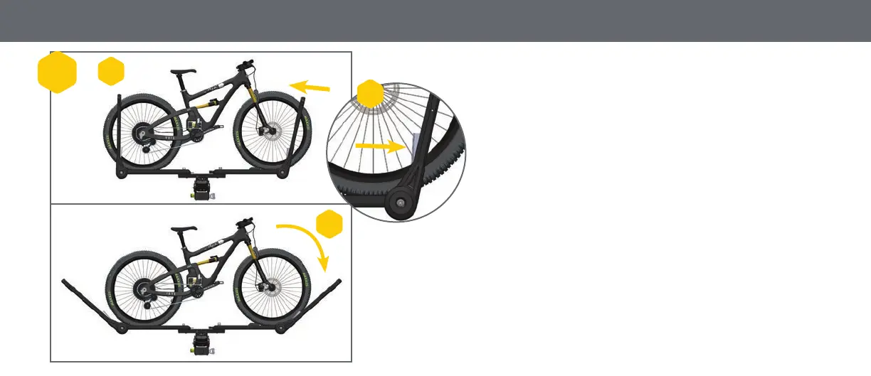 Holdlever and fold arm away from bike. Repeat steps for rear