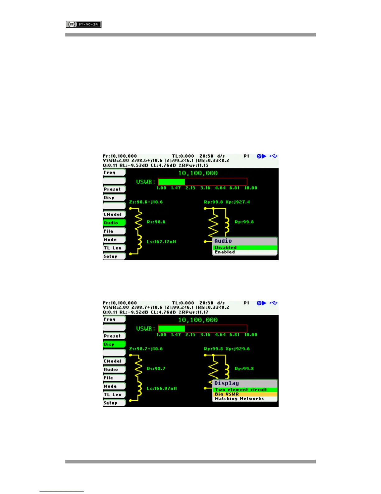 This mode offers optional VSWR audio feedback. When activated by the menu option «Audio»,