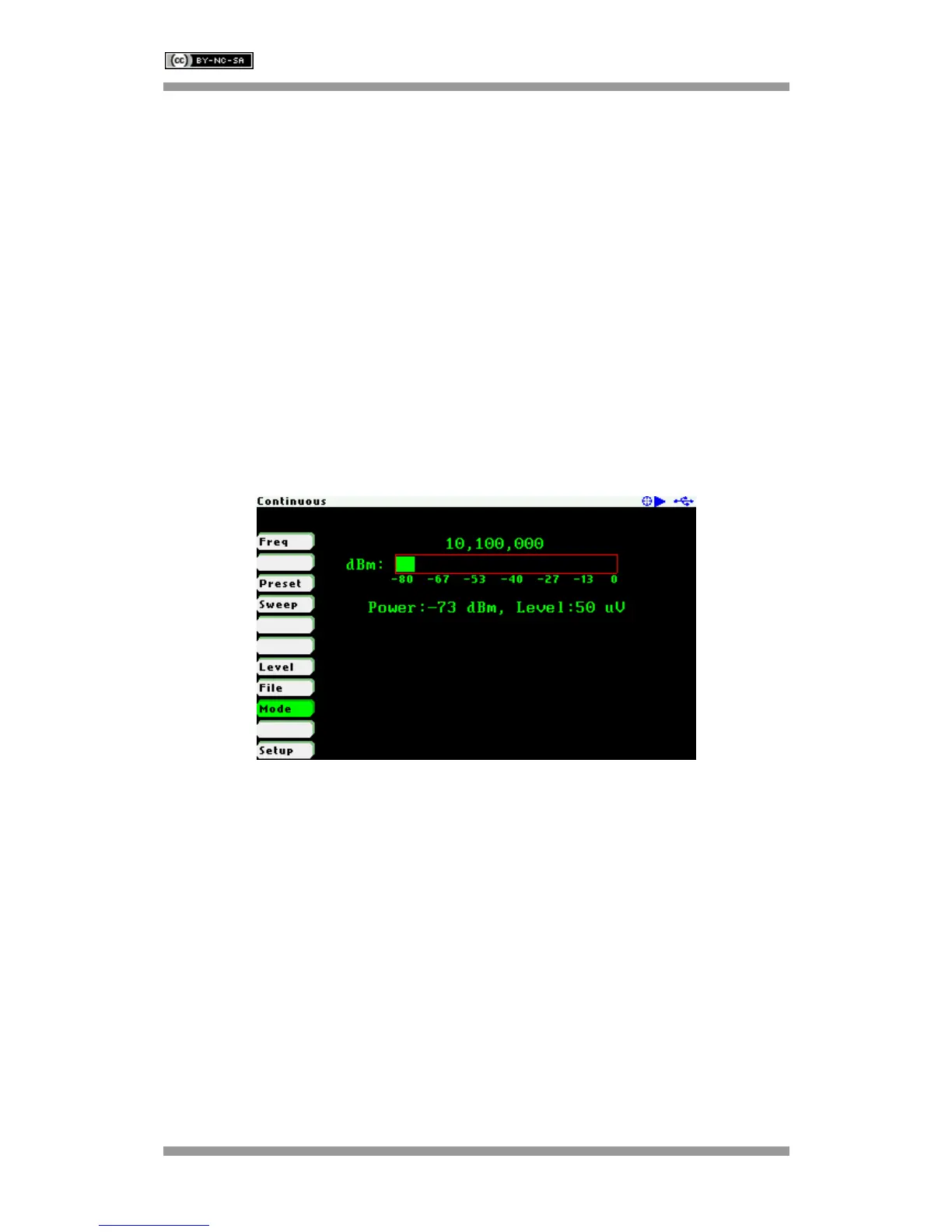 The screenshot below shows the signal generator screen in continuous frequency operation