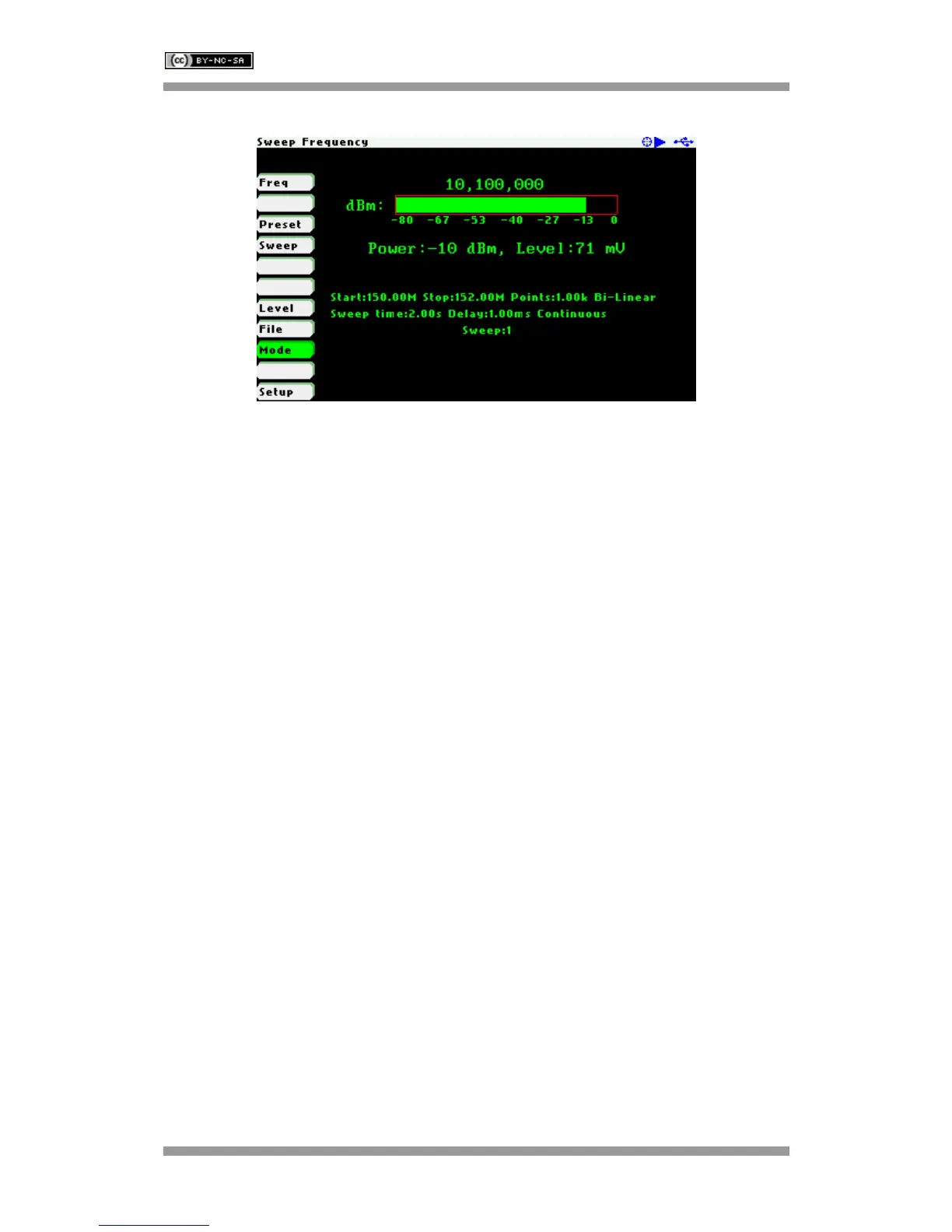All the sweep parameters are shown on the screen as seen in the screenshot below: