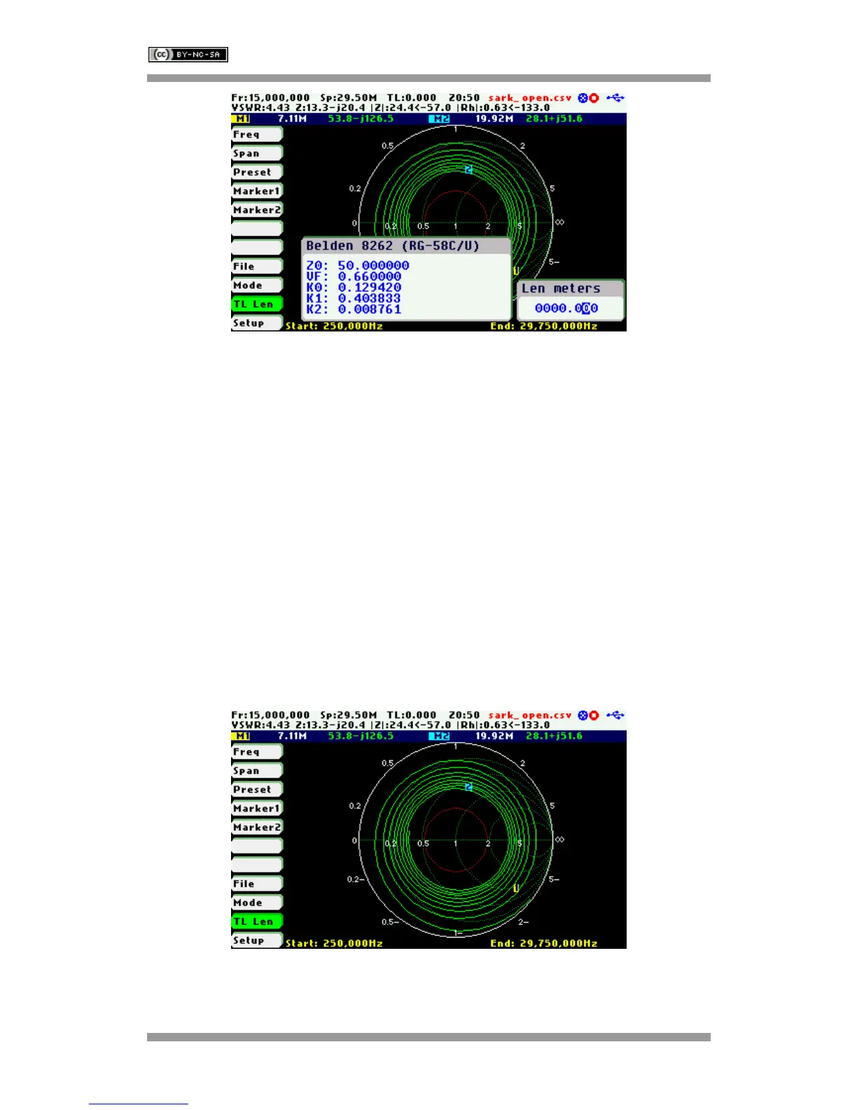 The screenshots below show an example of this in operation. A line of 28.2m of RG-58C/U coax