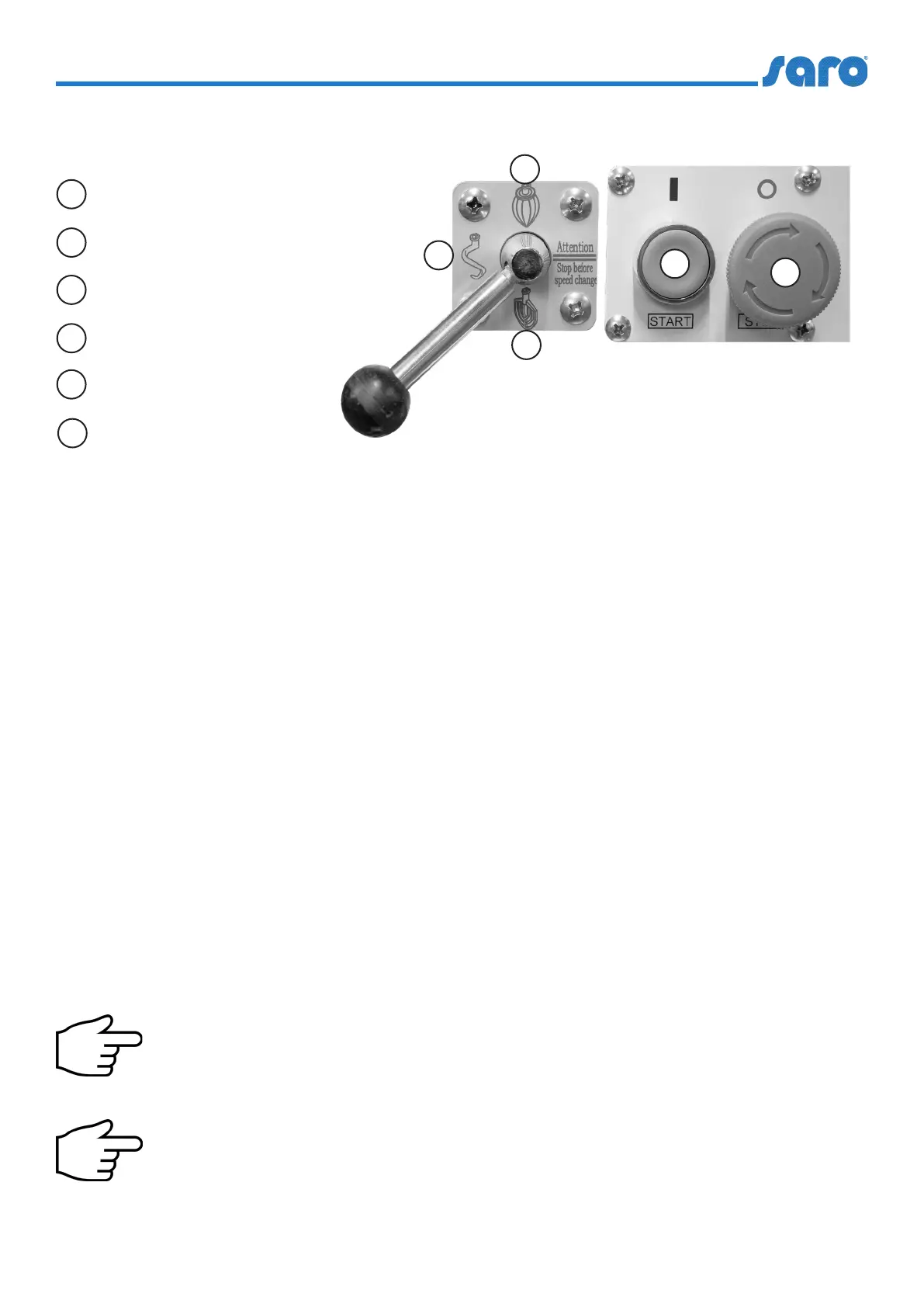Achtung! Bevor Sie eine andere Geschwindigkeitsstufe wählen; stopen Sie die Maschine, wählen Sie die